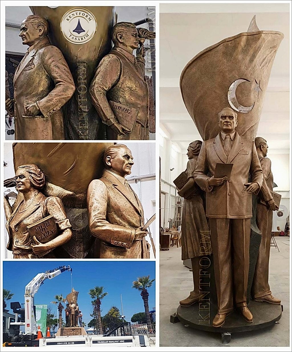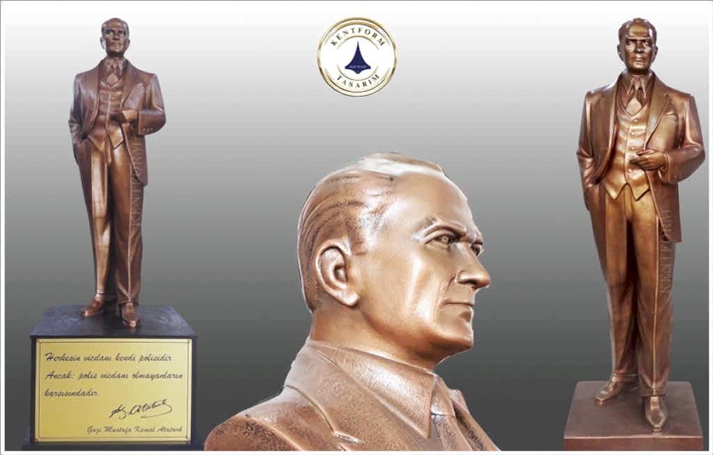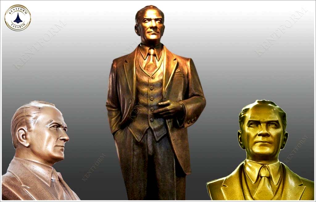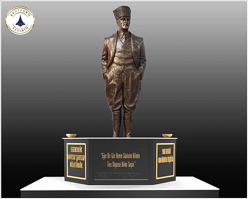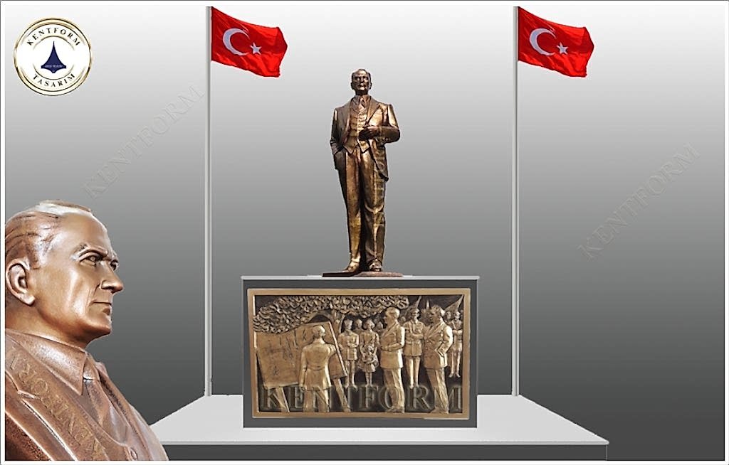 Kentform Atatürk heykelleri eserleri, özgün modellemelerdir. Projelere özel özgün tasarımlarda ve ölçülerde yeni çalışmalar uygulanmaktadır. Atatürk heykelleri çalışmalarında profesyonel tasarım ön planda tutularak, Atatürk’ün lider ruhu betimlenmektedir.