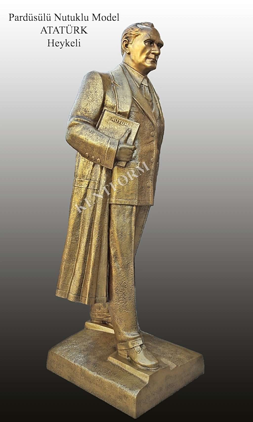 Pardösülü ve Nutuklu Atatürk heykeli modelinde Atatürk’ün sol elinde Nutuk yer almaktadır. Bu heykelde Atatürk’ün sağ eli yanda ve ileriye doğru bakar şekildedir. Sivil giyimiyle tasvir edilen bu Atatürk heykeli, 300 cm yüksekliğiyle meydan anıtı boyutlarındadır.