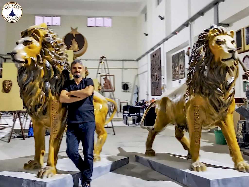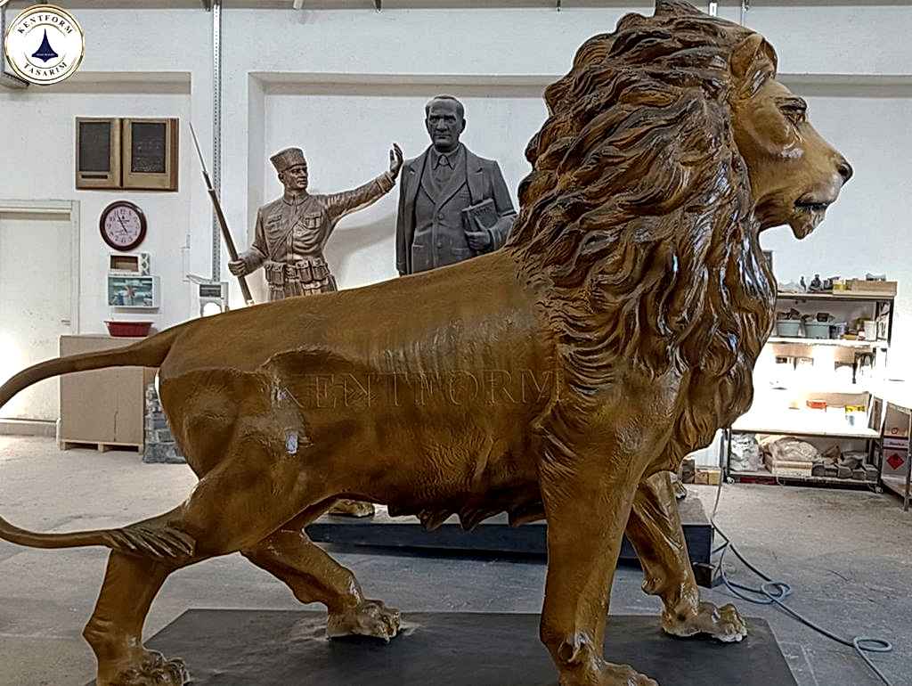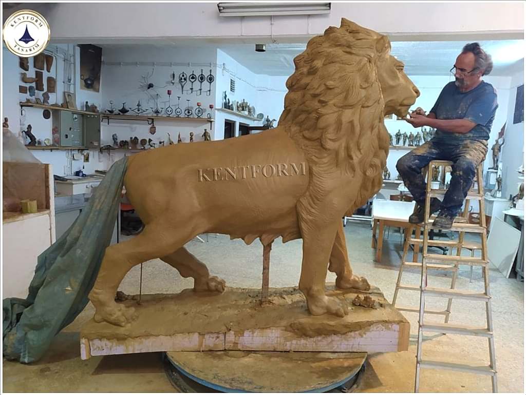 Özel modelleme tekniği ile imal edilen yaşayan park heykelleri arasında yer alan aslan heykellerinin iç kısımları metal konstrüksüyonlarla desteklenmiştir. Bunun yanı sıra cam elyaf takviyeli fiberglas malzeme kullanılmıştır. Renklendirme kısmında ise özel patina tekniği sayesinde bronz renk görünümü elde edilmiştir. Bu heykel park ve bahçe projesinde kullanılabileceği gibi süs havuzlarında da sadece aslan başı kısmı kullanımı tercih edilmiştir.