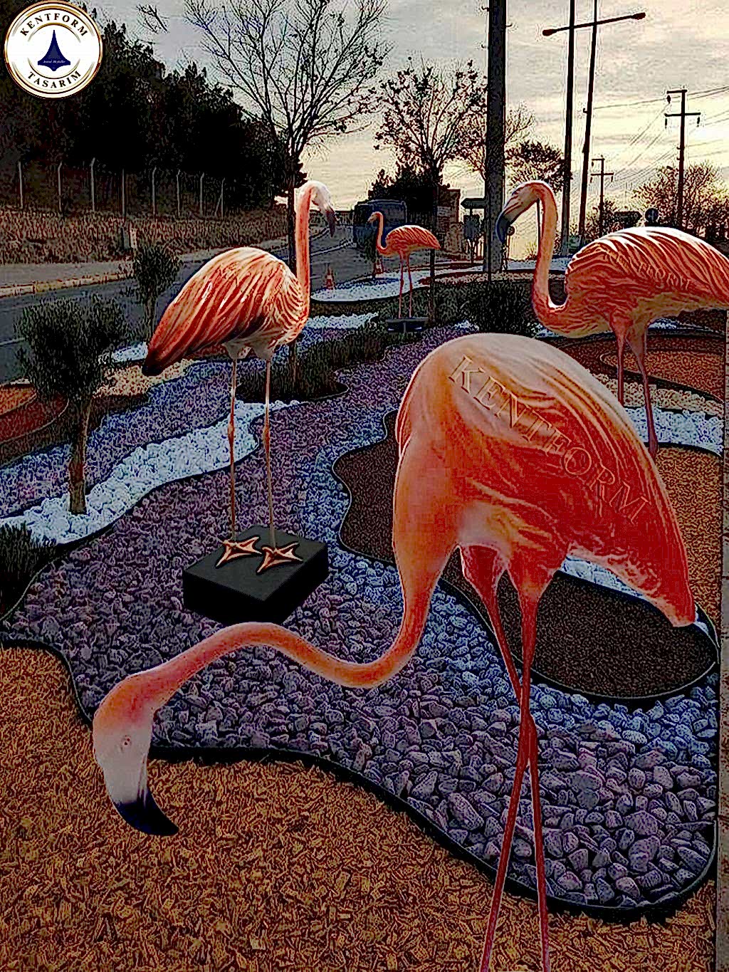 Kentform tarafından özenle üretilen mimari eserler arasında yer alan flamingo heykeli modelleme yöntemi ile tasarlanmıştır. Yaşayan park heykelleri arasında bahçe ve park tasarımlarında kullanılan bu ürün dayanıklı malzemelerden üretilmiştir.