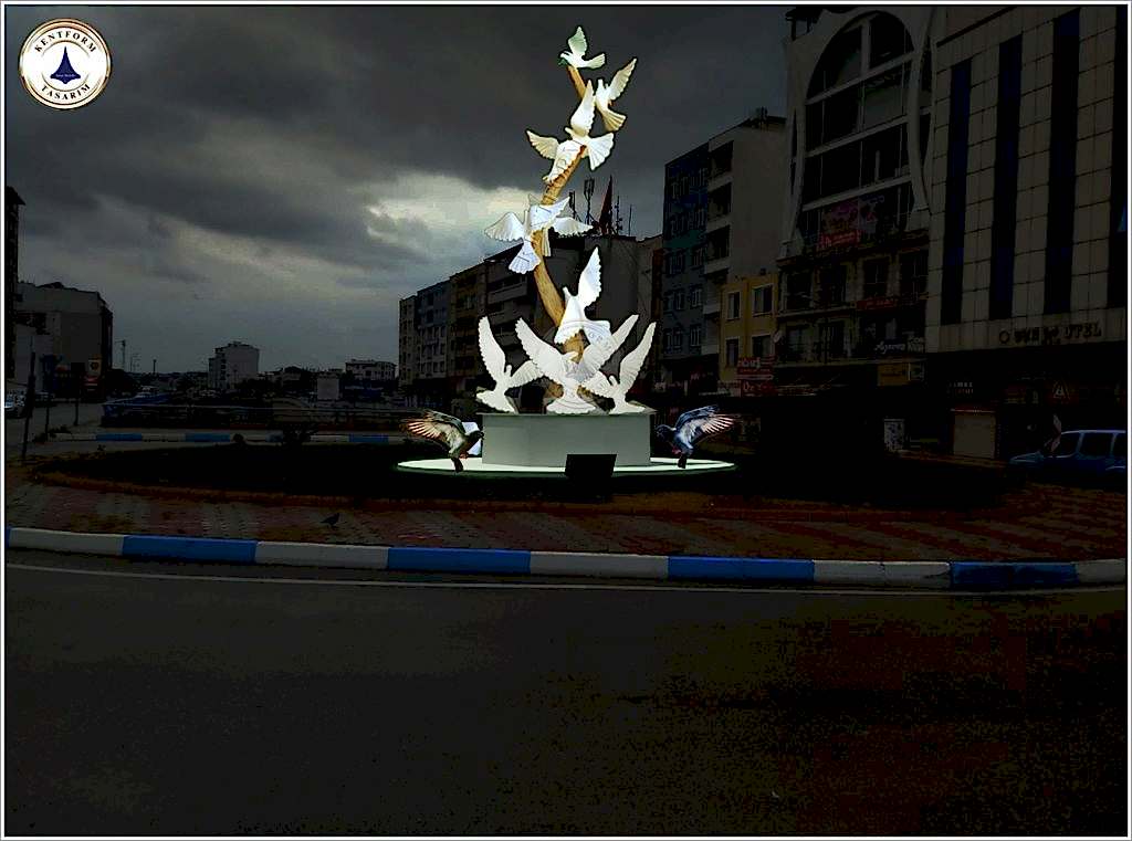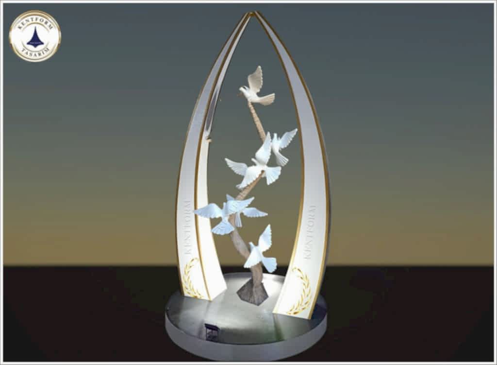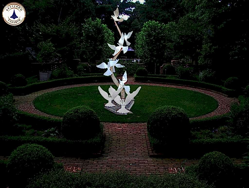 Tasarımlar arasında yer alan güvercin heykeli mermer görünümlü fiberglas malzemeden üretilmiştir. Bu tasarımda güvercinlerin iki kanat arası açıklığı 60 cm olarak uygulanmıştır. Kanat çırpan güvercinlerin modellendiği yaşayan park heykelleri tasarımında birden çok güvercin yer almaktadır.