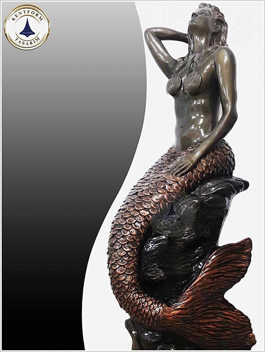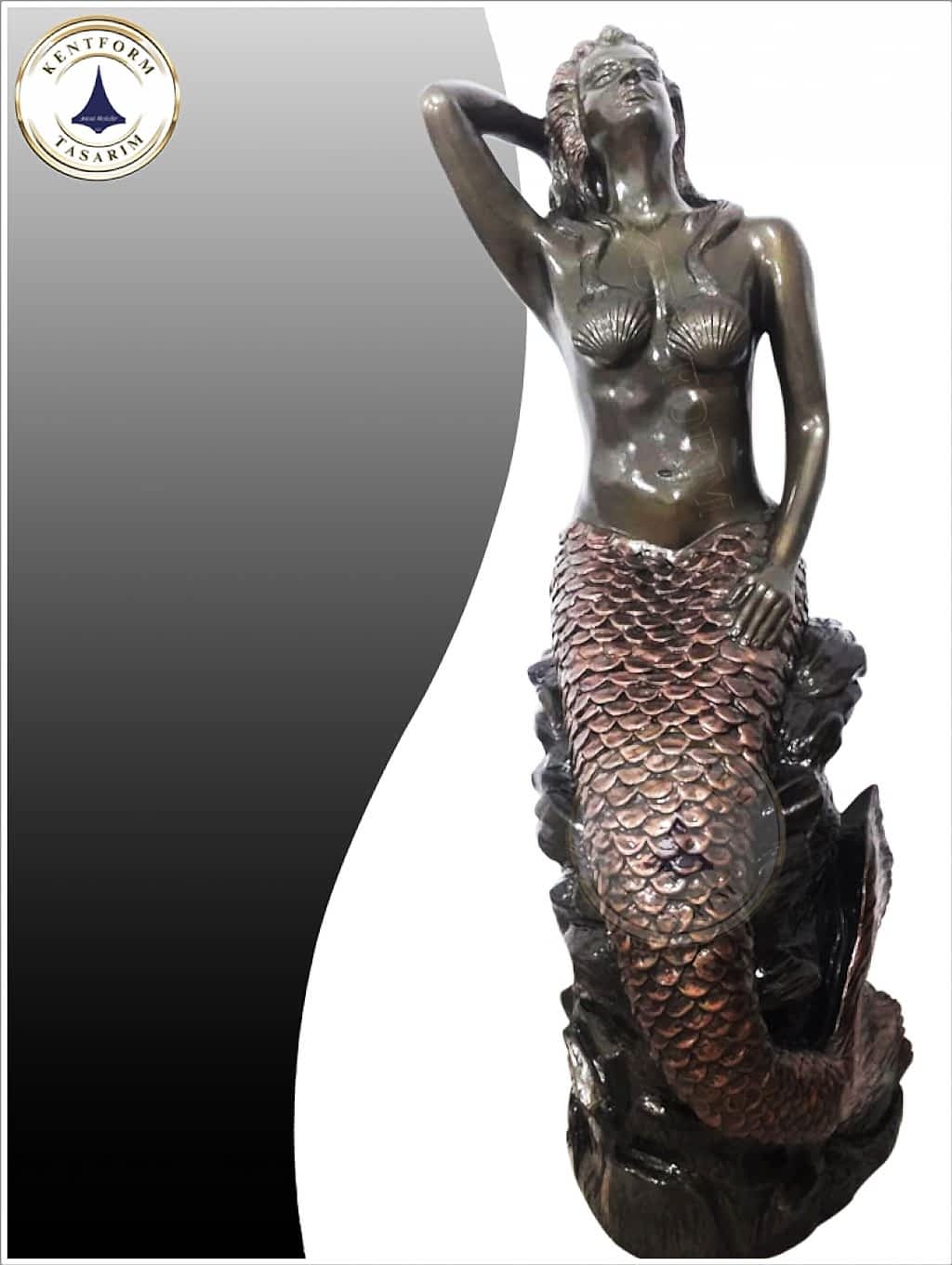 Yaşayan park heykelleri arasında yer alan Denizkızı heykeli bronz renkli olarak tasarlanmıştır. Tasarımda heykel ana malzemesi olarak cam elyaf takviyeli fiberglas malzeme tercih edilmiştir. Eserin boyutu ise 170 cm olarak belirlenmiştir. Estetik zevkimizi özenle işlediğimiz bu tasarımımıza web sitemiz olan Kentform sitesinden göz atabilirsiniz.
