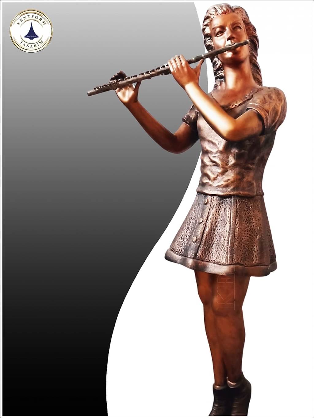 Yunus heykeli | Müzisyen flüt çalan kız heykeli |