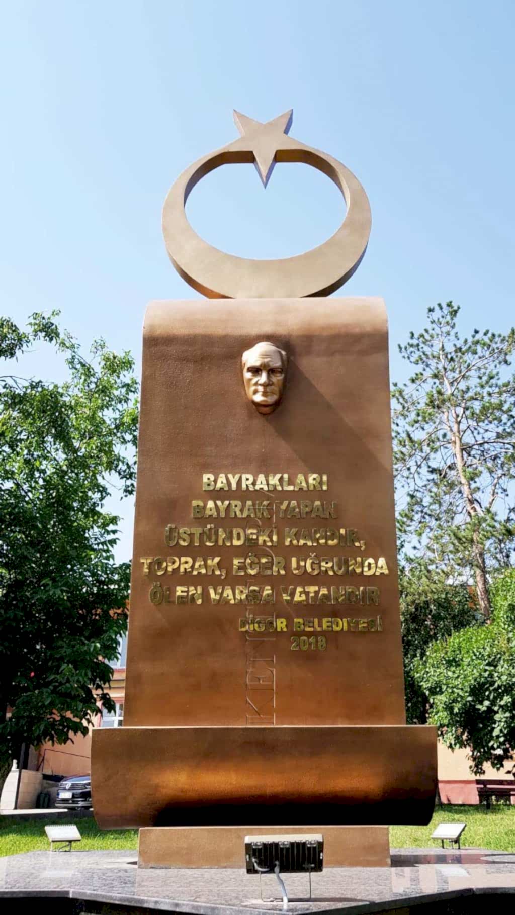 Altın yaldız renginde yer alan bu yazılar Türk bayrağı rengi üzerinde yer almaktadır. Şehitlik anıtı yanlarında ise şehitlerin isimlerinin bulunduğu platformlar yer almaktadır. Anıt yüksekliği 550 cm olan bu yapının dışında şehitlik anıtları şu modellerde de tasarlanabilmektedir: