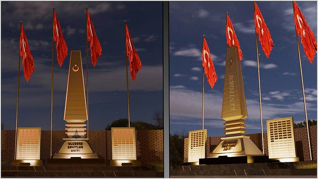 Türk tarihi içerisinde savaşların önemi ve yeri büyüktür. Türk gençliğine kazanılan savaşların emek ve mücadele sonucu olduğunu göstermek adına şehitlik anıtı farklı tasarımlarda ele alınmaktadır. Kentform Şehitler Anıtı proje çalışmasında Türk bayrağı hilali ve anıt üzerinde kabartma yazılar bulunmaktadır.