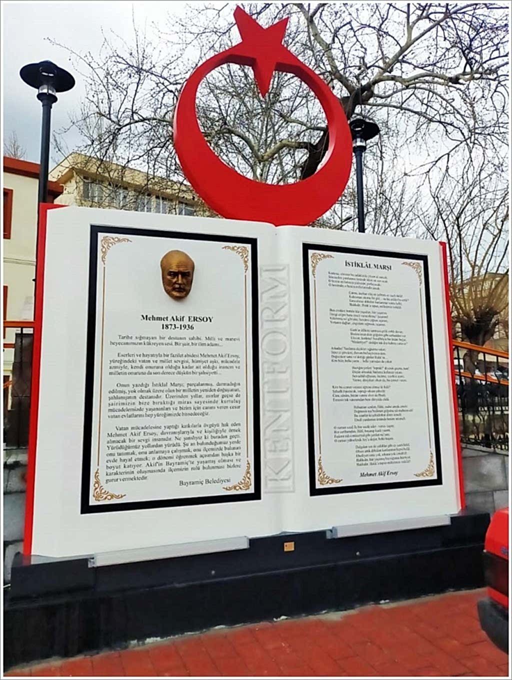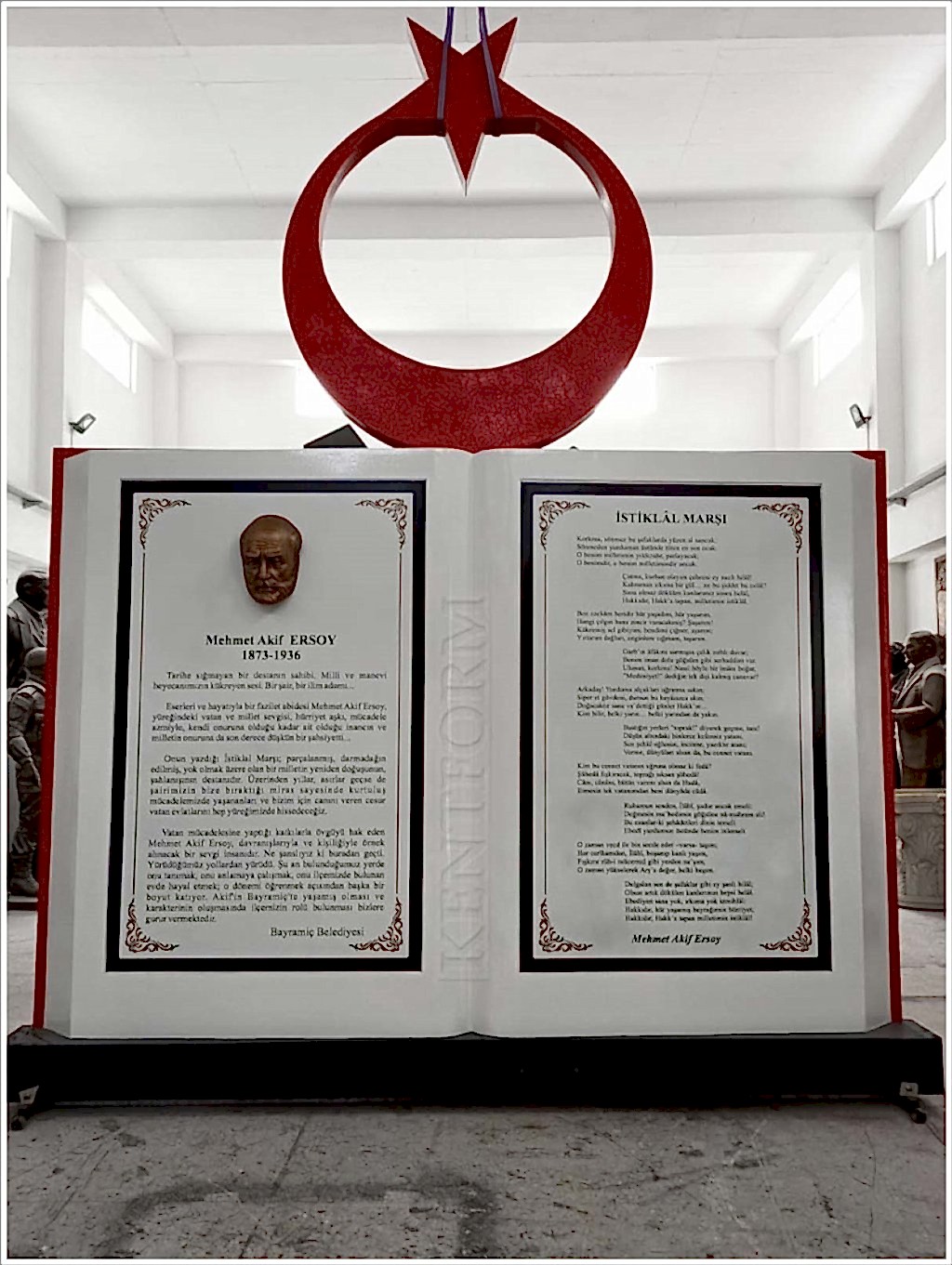 Çanakkale Bayramiç Belediyesi için Kentform tarafından tasarlanan bu anıt, projeye özel tasarlanmıştır. İstiklal Marşı anıt çalışmasının yüksekliği 450 cm’dir. Kitap formunda tasarlanan bu anıtın sayfa bölümünde İstiklal Marşının 10 kıtası ve Mehmet Akif Ersoy’un yaşamı yer almaktadır. Kitabın üst merkezinde Ay- Yıldız, arkasında ise İstiklal Marşı yazısı yer almaktadır.