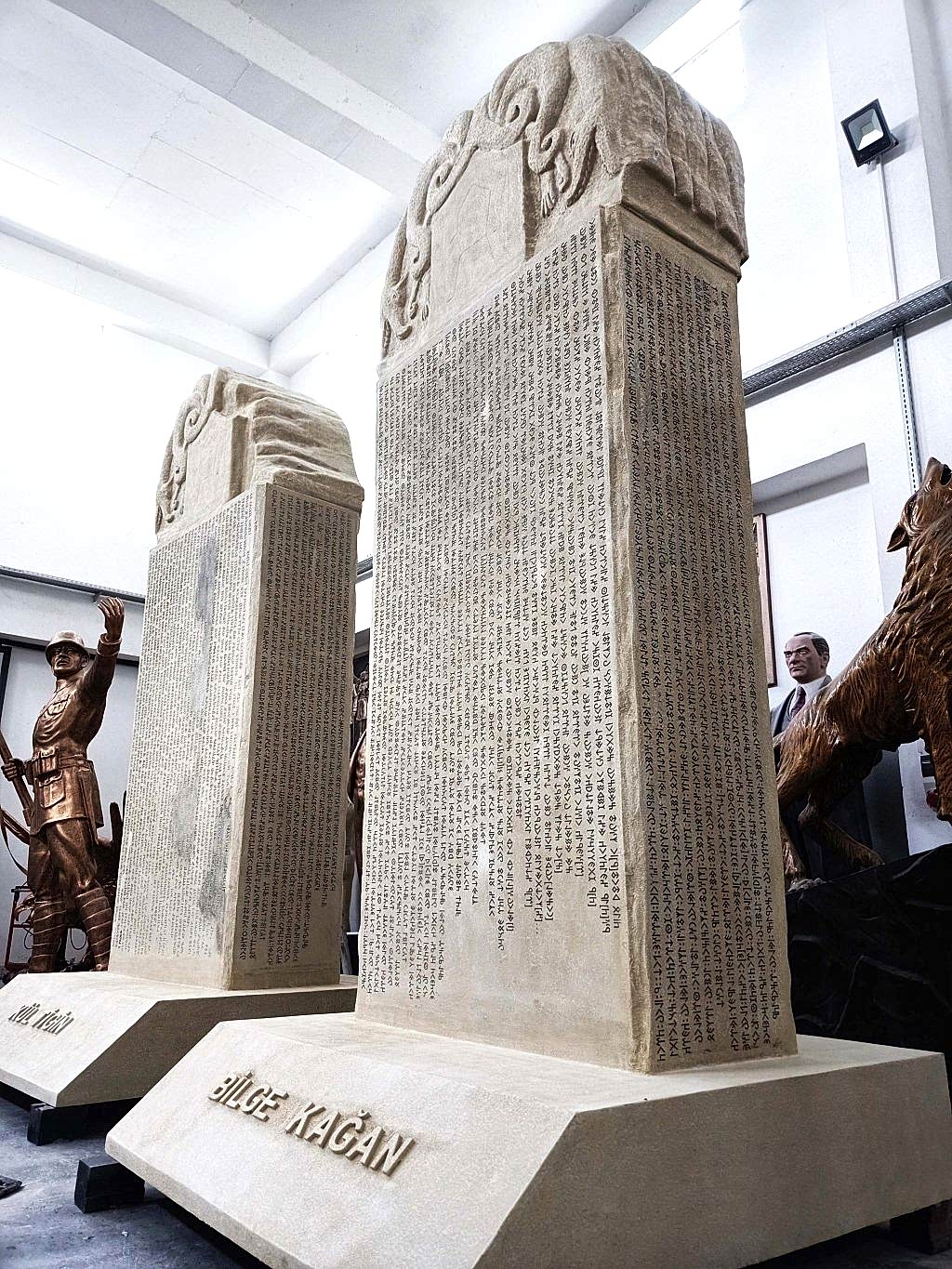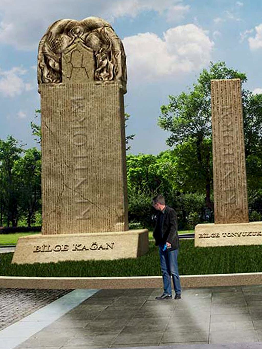 12 metre yüksekliği olan bu anıtta 16 Türk devleti vurgulanmaktadır. 16 Türk devletini temsil eden sütunlar sayesinde inişli çıkışlı Türk devletleri sembolize edilmiştir. Sütunların inişli çıkışlı ve asimetrik yapısı üzerine Türk devletlerinin isimleri yer almaktadır.