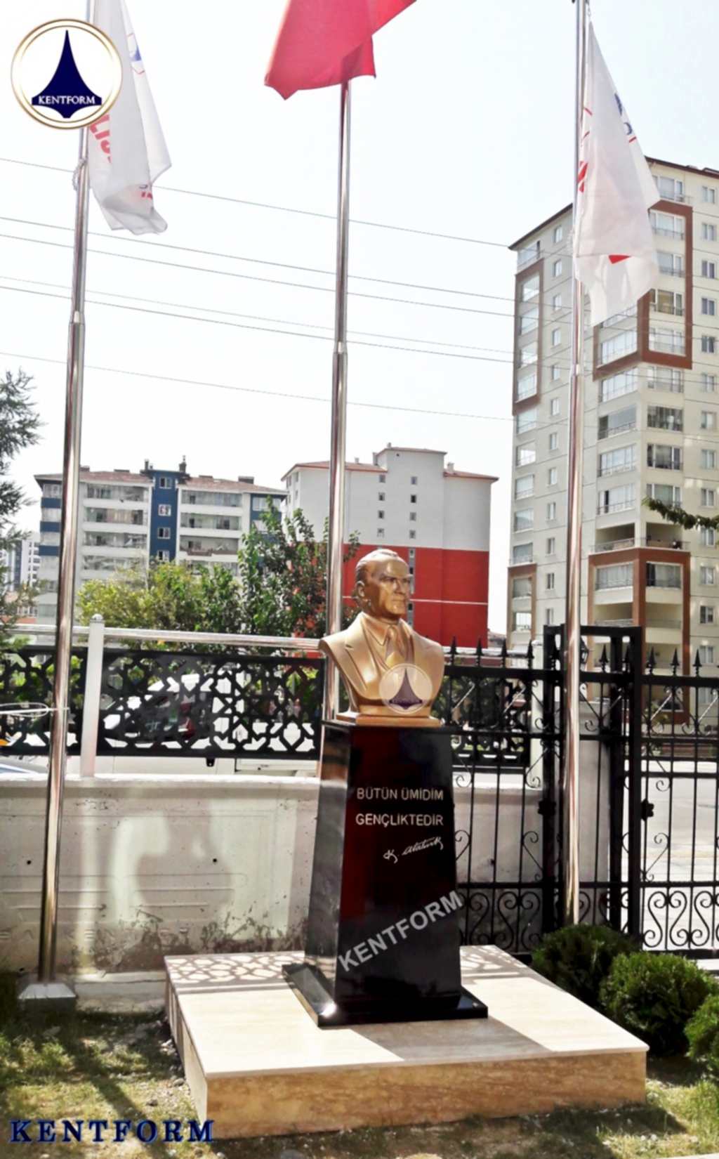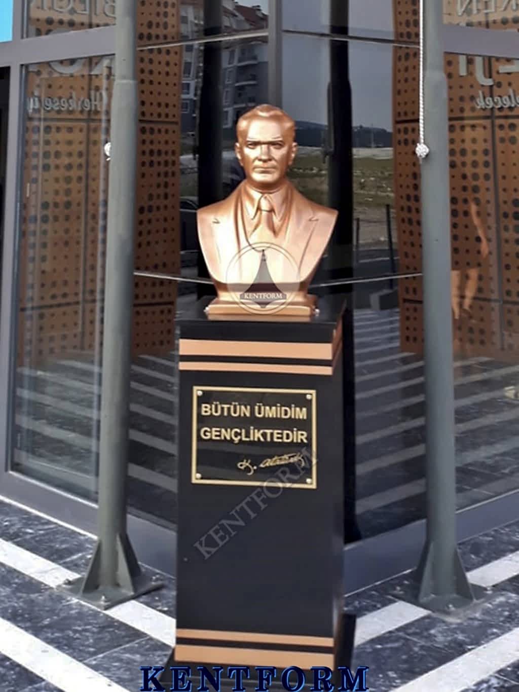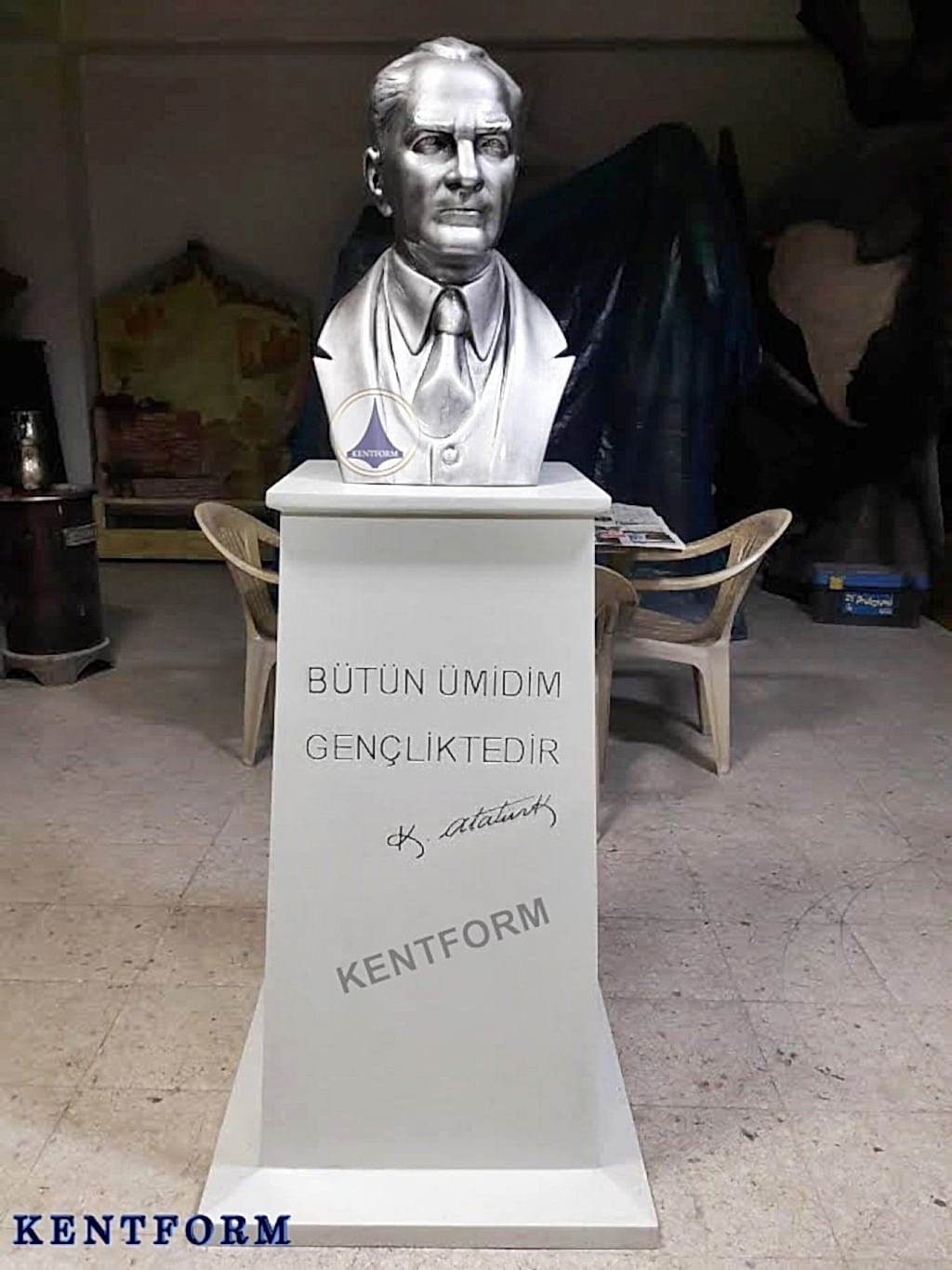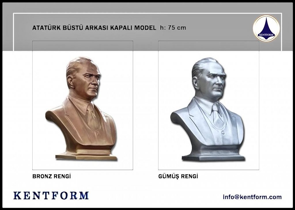 Atatürk büstü yönetmeliği kapsamında bazı devlet kurumlarının ve özel kurumların, Atatürk büstüne sahip olması gerekir. Yönetmelikte belirtilen şartlarda büstün olması, ilgili kurumun veya kuruluşun yönetiminin sorumluluğundadır. Kentform Tasarım olarak ilgili yasal mevzuata uygun büstleri kısa sürede kaideli olarak üretiyor ve bu konudaki ihtiyaçlarınıza çözüm oluyoruz. Sitemizdeki Atatürk büstü modellerini inceleyebilir ve siparişinizi hemen oluşturabilirsiniz.