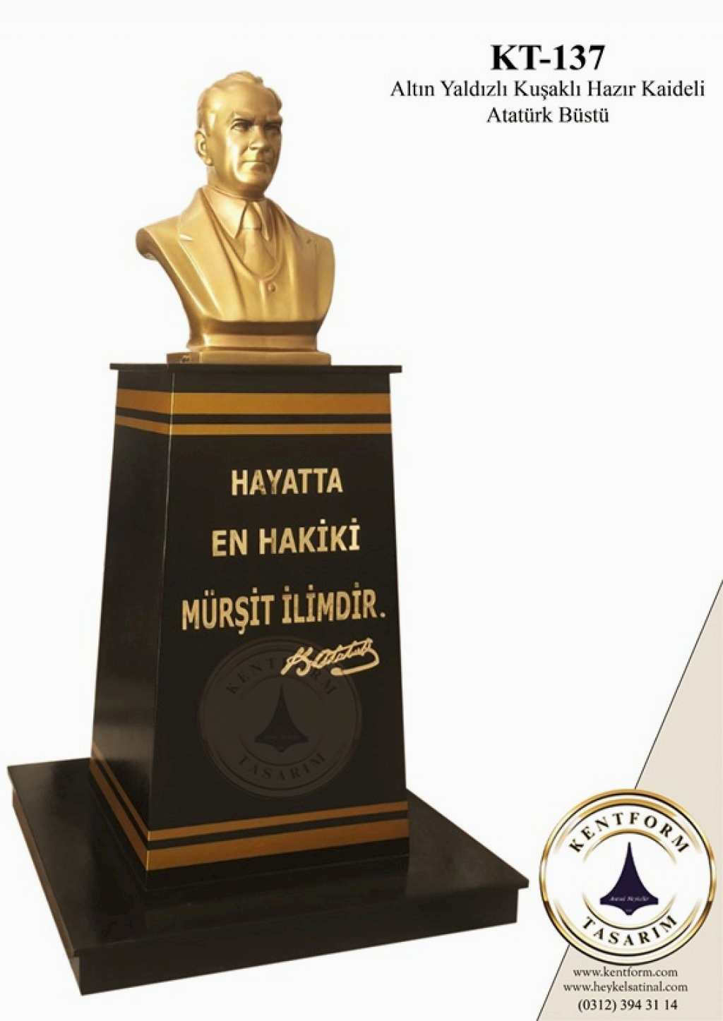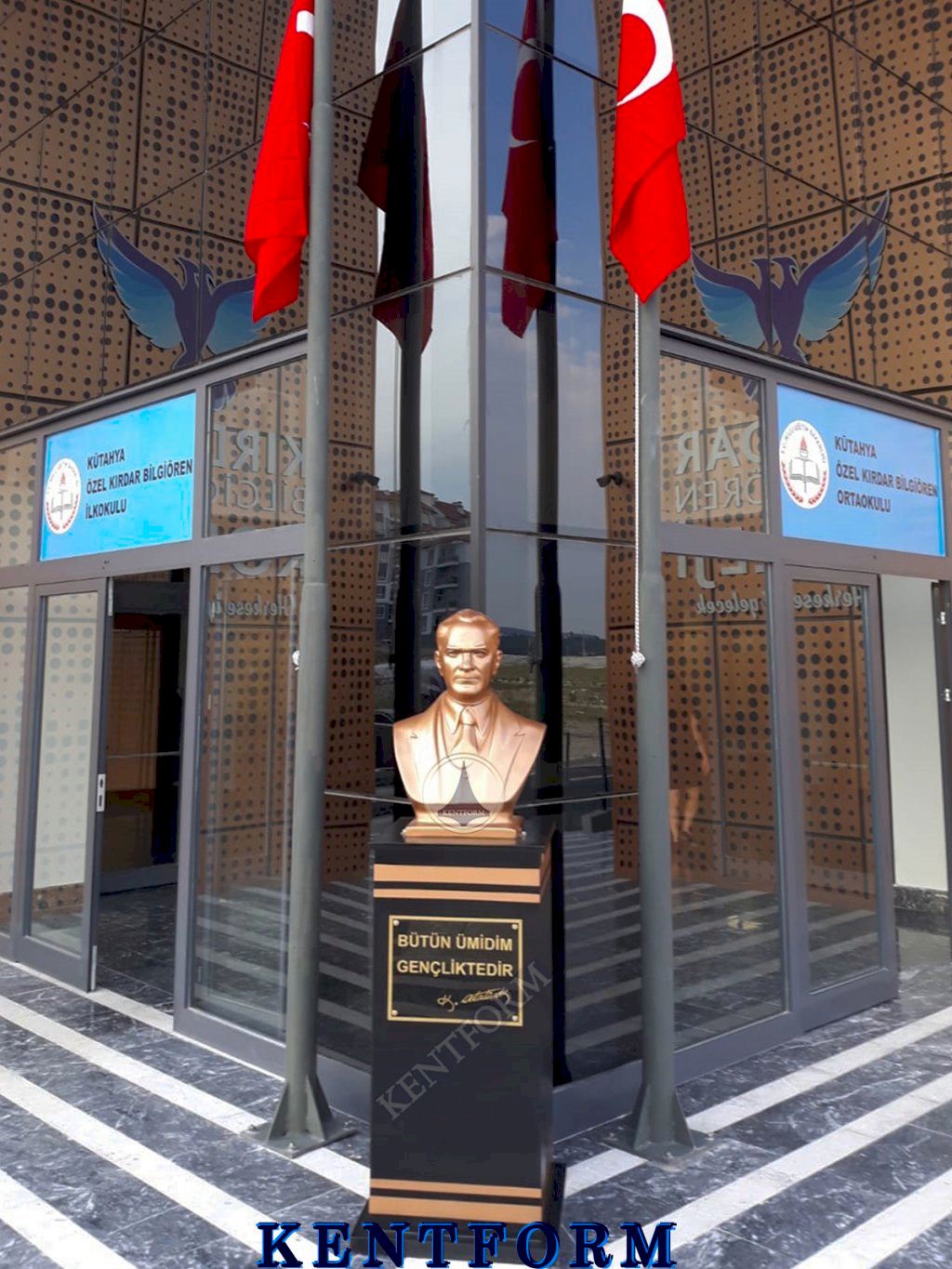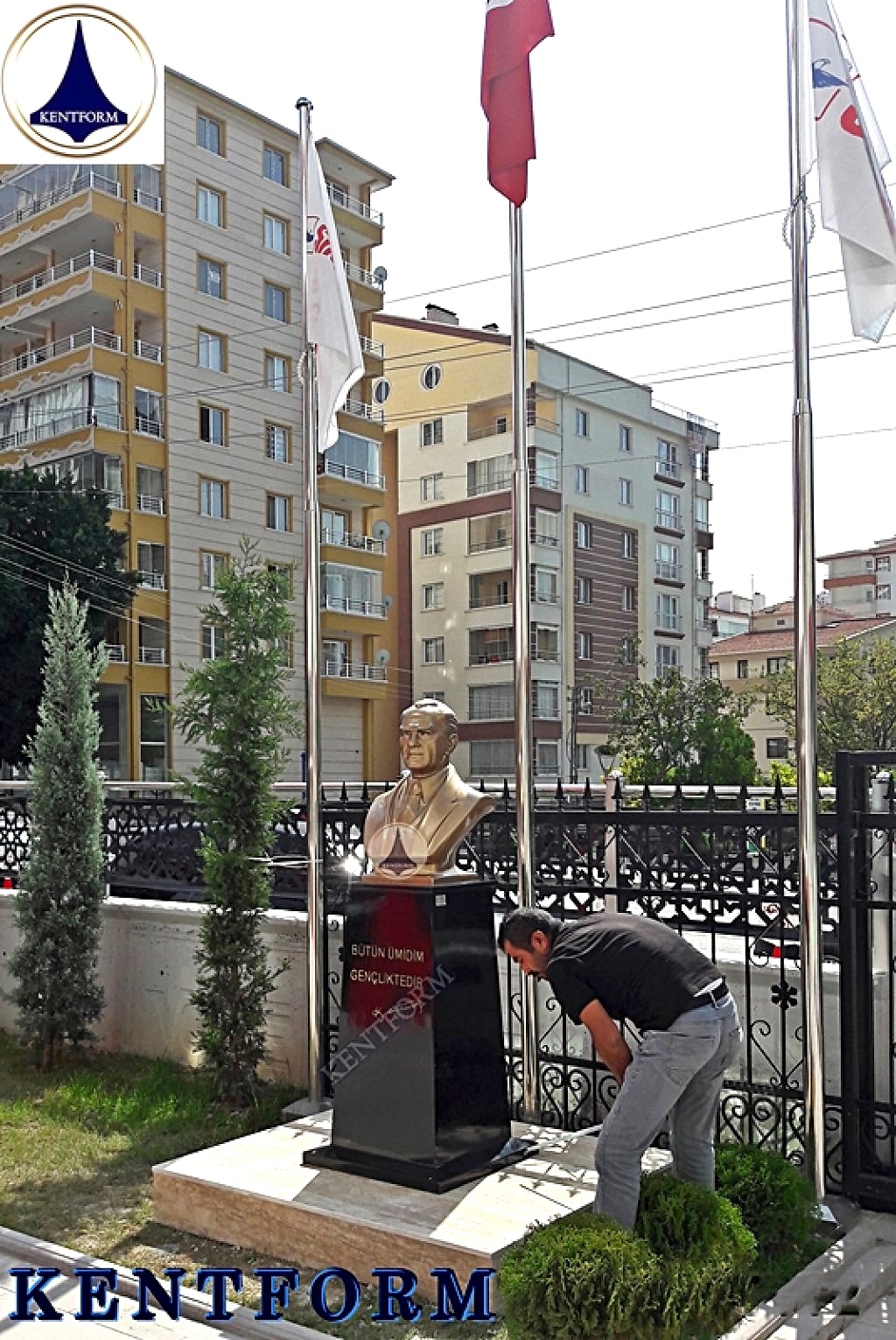 Atatürk büstü yönetmeliği kapsamında bazı devlet kurumlarının ve özel kurumların, Atatürk büstüne sahip olması gerekir. Yönetmelikte belirtilen şartlarda büstün olması, ilgili kurumun veya kuruluşun yönetiminin sorumluluğundadır. Kentform Tasarım olarak ilgili yasal mevzuata uygun büstleri kısa sürede kaideli olarak üretiyor ve bu konudaki ihtiyaçlarınıza çözüm oluyoruz. Sitemizdeki Atatürk büstü modellerini inceleyebilir ve siparişinizi hemen oluşturabilirsiniz.