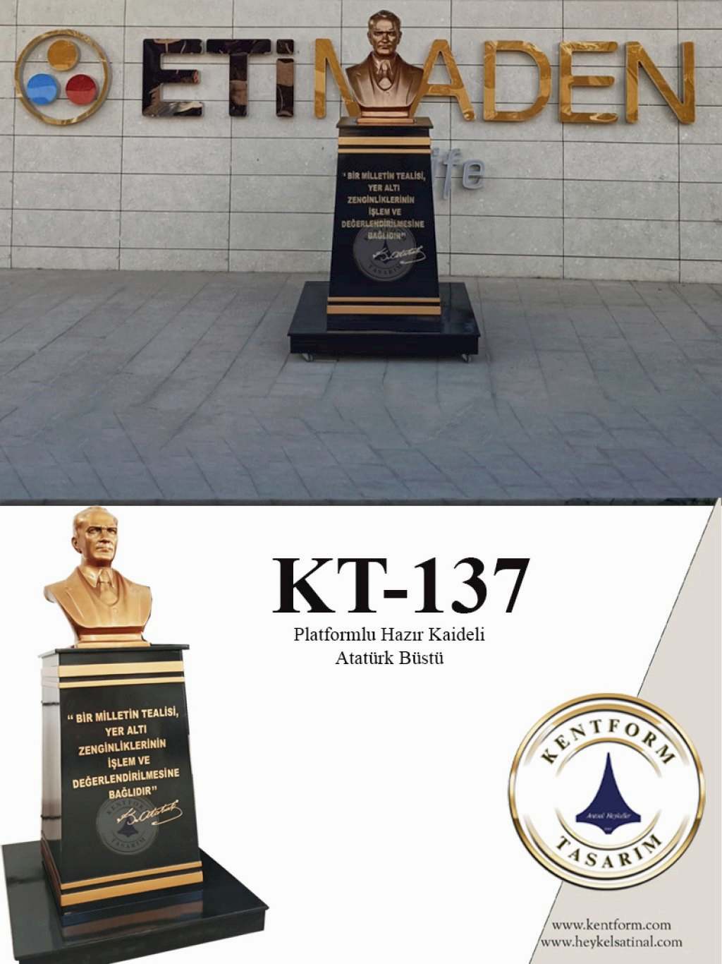 Platform | Bazı Atatürk büstleri platformludur. Yerleştirilecek alanın özellikleri ve dekoratif unsurlara göre platformlu veya platformsuz seçenekler tercih edilebilir. |